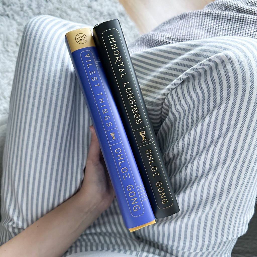 This is my 1/3 copy, I’m bummed the BOTM spines don’t match BUT..I’m seeing Chloe for a signing next week and also getting a matching Waterstones cover to Immortal Longings 🖤 catch me recommending this series to everyone 😉