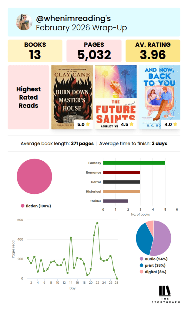 What a good short month! I’m in progress on another audiobook but don’t want to binge it and save it for next month 😄